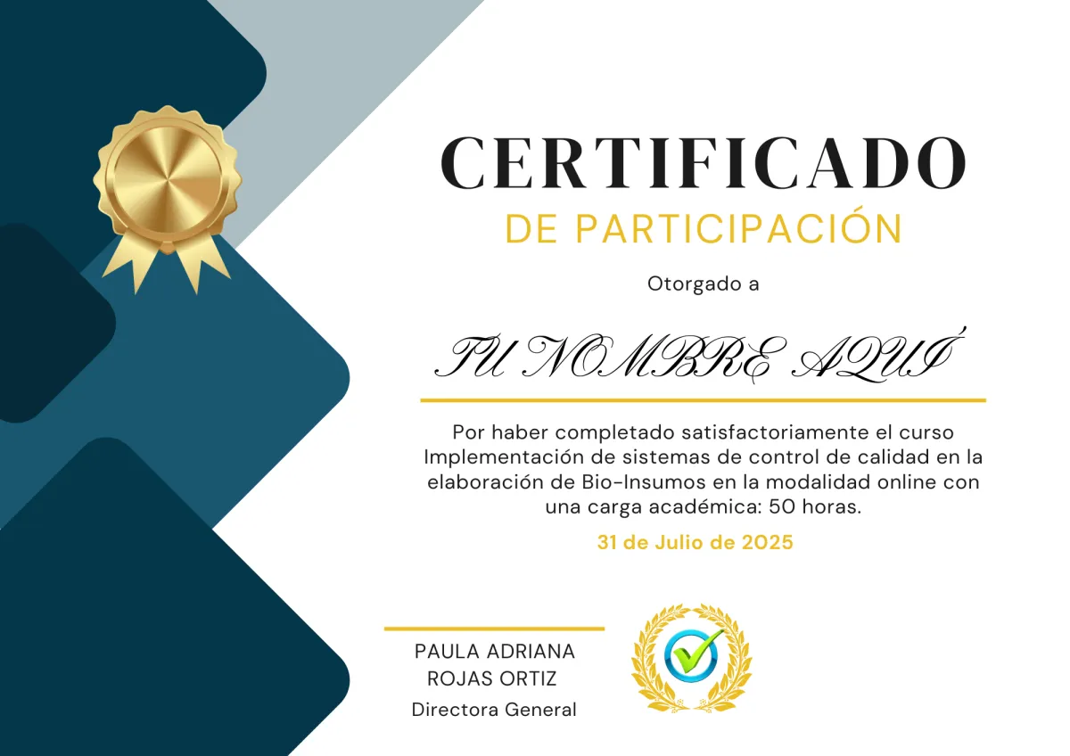 Al finalizar serás capaz de implementar sistemas de calidad que garanticen la efectividad predecible de tus Bioinsumos.